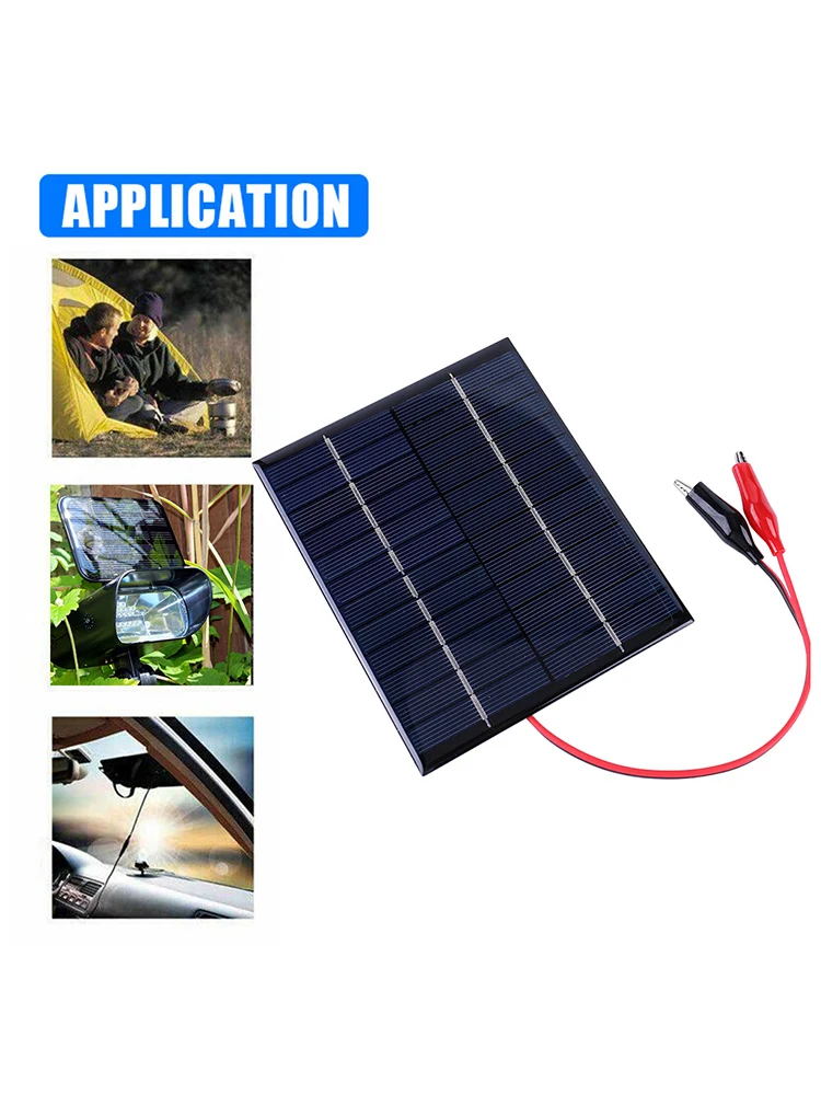 5W 12V Mini Small Solar Panel Module Waterproof DIY Polysilicon Solar Epoxy Cell Charger with Clip Cable Solar Battery Charger for Outdoor Camping for 9-12V Battery Charging