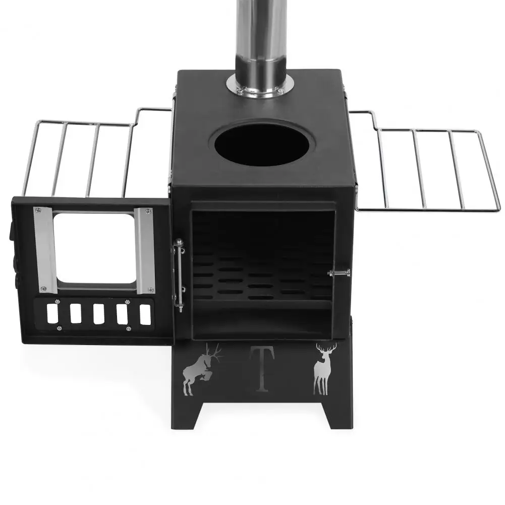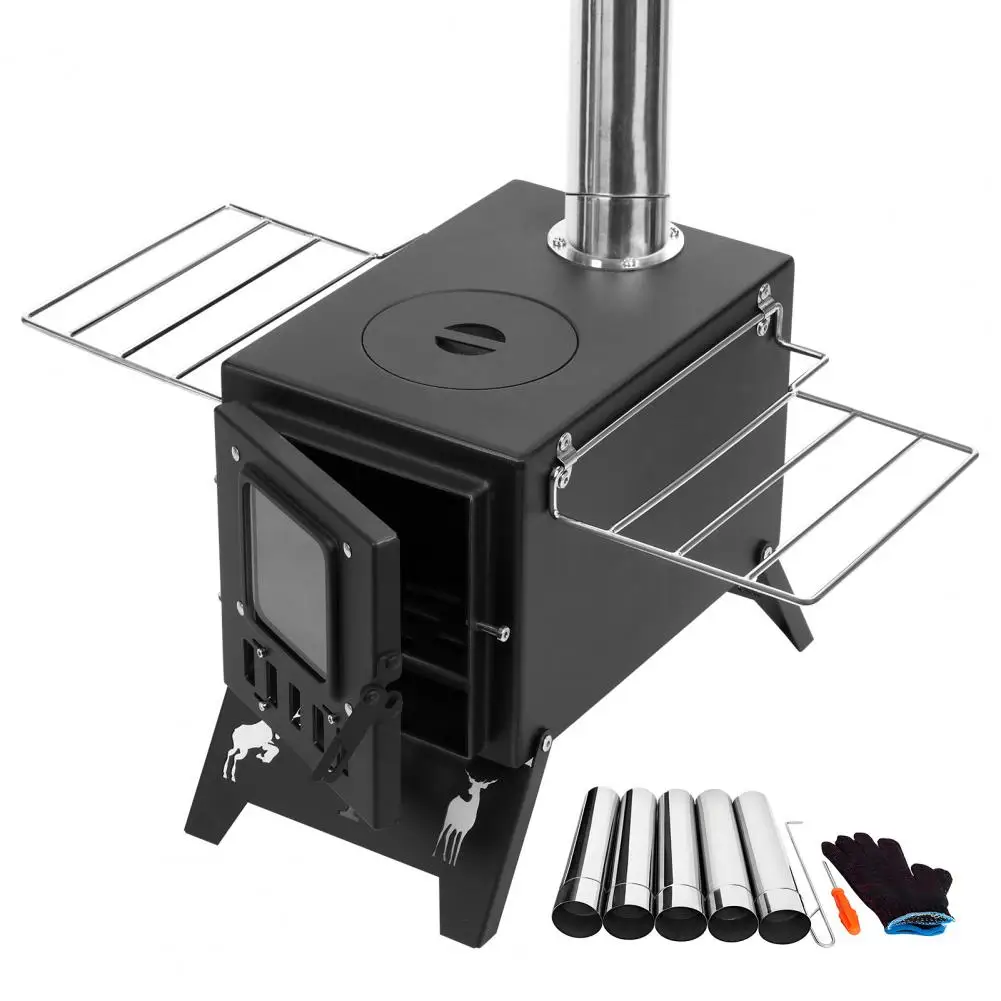 Wood Burning Stove, Folding Portable Wood Stove, Tent Stove for Heating, Outdoor camping stainless steel desktop stove include PipesDescription:Folding Design: The folding handles provide the space for the thermal insulation, as a dry stand to dry gloves, socks and small wet items, place food and cooking pans, which is extra convenient to carry on the trip. The bottom legs of the tent stove are collapsible, funnel and all accessories can be fully packed inside furnace body. The wood burning stoves are equipped with large size visible window that can let you pay attention to the internal combustion at any time.Visible Window Design & Adjustable Air Vents: To better observe flame situation, this grill is designed with a visible window. Combined with adjustable air vents on the bottom, you can control the airflow to maintain a stable temperature for the best cooking experience.Premium Material: The cooking area is made with metal material for durable use and long-lasting. It resists oxidation and corrosion, making it lightweight and more durable than iron.Heating for Tent: The camping wood stove generally heating for tent which throws out amount of heat to keep you warm on cold day, also with the bonus of taking up less space. It's also an excellent choice for boiling.Wide Application: Portable barbecue grill can be used in various occasions, perfect for outdoor camping, hiking, cooking, beach, backpack, picnic, outdoor party and more.Item Name: Barbecue GrillMaterial: MetalPipe: 5 SectionsFeatures: Visible Window, Handle Design, Adjustable Air InletSize Details:Barbecue Grill: L: 20cm/7.87", W: 30cm/11.81", H: 20cm/7.87" (Approx.)Pipe Total Length: 113cm/44.52" (Approx.)Notes:Due to the light and screen setting difference, the item's color may be slightly different from the pictures.Please allow slight dimension difference due to different manual measurement.Package Includes:1 x Barbecue Grill